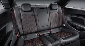 Other visual features include the RS-specific diffuser insert, oval tailpipes of the RS exhaust system and the surface-mounted spoiler lip. Then there’s the standard 19″ wheels, though buyers might consider going for the more imposing 20″ optional alloys.