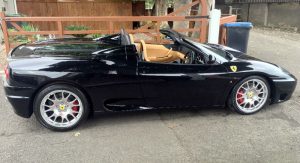 Produced in 2001, this Ferrari 360 Spider has a Nero exterior over a Sabbia leather interior, BBS alloy wheels, Challenge rear diffuser, Tubi Sports exhaust system, wide carbon fiber-backed racing seats, and privacy glass.