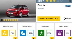 Three stars were scored by the newly launched Ford Ka+, which showed poor protection for the rear passenger in the full-width frontal crash test, and lacking features such as autonomous braking and rear seatbelt pretensioners sealed its fate in the safety assist.