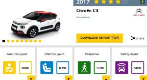 Tested during the same session by the European safety specialists, the new generation Citroen C3 narrowly missed a top five-star rating, and scored 4 stars. The French supermini didn’t fall short in the adult or child occupant, but in the pedestrian protection, where parts of the windshield were noted as being poor.