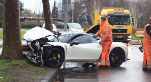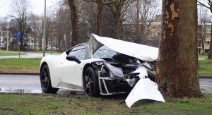 Posted by FerrariOwnersClubNL, these images show the Italian supercar with its entire front end messed up, after hitting a tree, in Amsterdam, Netherlands.