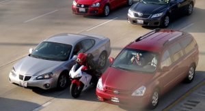 For those who don’t know, a lawful lane splitting maneuver occurs only when a motorcyclist determines he or she can safely move alongside a vehicle traveling in the same lane, without exceeding 40 mph (64 km/h).