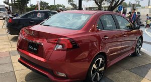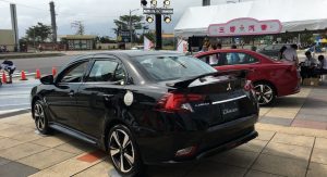 The Grand Lancer is basically a re-skinned version of “our” Lancer, with the new bodywork featuring the company’s latest “Dynamic Shield” front grille, a boomerang-like crease on the sides and an a pointier rear end.