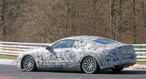 The alloy wheels and brake rotors also appear to be bigger and are matched by blue M calipers. We couldn’t help but notice the lack of a quad exhaust setup, but this could be just part of the camouflage or it could indicate that the car in question might be in fact a regular 8-Series fitted with the M Sport package.