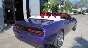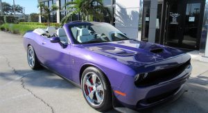 Finished in a Plum Crazy Pearlcoat, which is Drop Top Customs’ (the company that built it) way of saying purple, it comes with a price tag of $89,999, from VeroBeachChrysler in Florida.