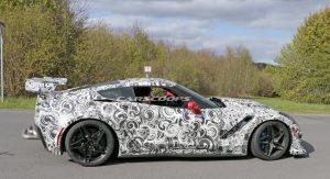The prototype’s bulging hood suggests a monster of an engine is lurking underneath and, if previous reports are correct, it could be an all-new twin-turbo LT5 V8. Little is known about the engine at this point but rumors suggest it could develop more than 700 hp (710 PS). If that number pans out, the ZR1 will have no problem besting the Z06 which comes with 650 hp (659 PS).