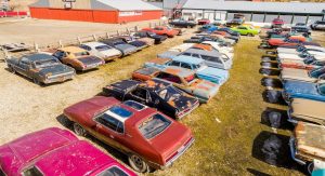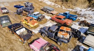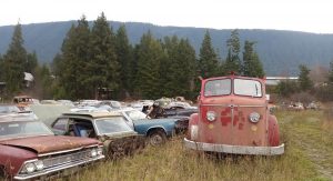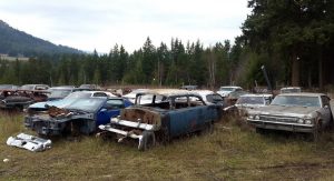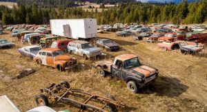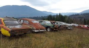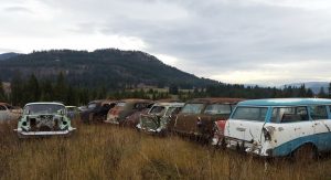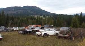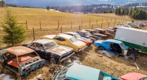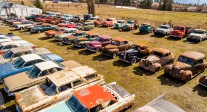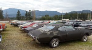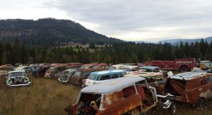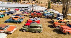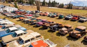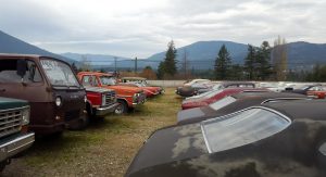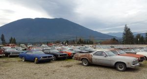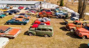 The property owned by Mike Hall located approximately one hour east of Kamloops, includes 5 acres of land, a renovated house, a 1,200 square-foot steel building, a 900 square-foot restoration shop and an auto salvage yard that currently holds over 300 vintage cars.