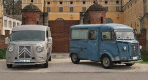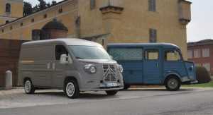 The new van is the work of Fabrizio Caselani and David Obendorfer and is made from lightweight fiberglass body parts built over the platform of Citroen’s Relay hauler. The vehicle therefore incorporates all the modern technologies and safety equipment of the Relay and adorns it in bodywork reminiscent of the original H Van.