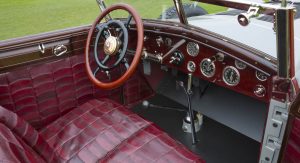 Evidently smitten by its signature low windshield, disappearing convertible roof, reptile-skin red leather interior, beautiful wood trim, and highly polished brightware, oil baron Frederick Henry Bedford, Jr. bought it virtually right off the show stand at the 1929 New York Auto Salon. It remained in his family’s possession for some 75 years until noted father-and-son collectors Paul and Chris Andrews bought the car from the Bedford estate in 2008, and two years later commissioned an exhaustive restoration process that took another two years.