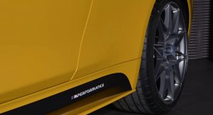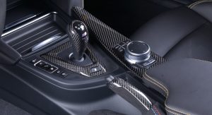 Inside, you’ve got the M Performance Alcantara steering wheel, M Performance metal pedal set and carbon fiber accessories. M-colored red & blue stitching is found on the steering wheel and at the base of the handbrake lever, though most of the cabin features yellow accent stitching throughout.