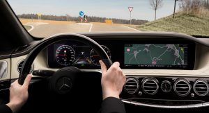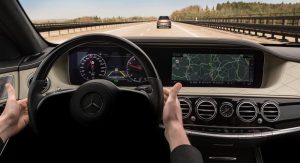 The way Active Distance Assist DISTRONIC works is by predictively reducing speed according to the route ahead, as the car approaches any turns or even toll booths. For example, if the car is in the slow lane, it will decelerate when approaching a desired motorway exit. By the way, the reduction of speed also differs depending on the selected transmission mode (ECO, COMFORT, SPORT) – just to give you an idea of how clever the updated W222 S-Class will be.