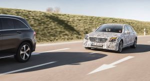 Now, Mercedes have went ahead and released a set of official images, showing an updated W222 prototype on the road, making good use of its extended driving assistance functions.