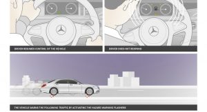 With Active Lane Change Assist, the driver needs only to nudge the indicator stalk and the car will take action. Once the stalk is activated, the sensor system checks whether the next lane is clear (alongside and behind the vehicle), while also taking into account other vehicles’ speeds. With the Active Speed Limit Assist system, one of the coolest features is that the updated S-Class will be able to make stops of up to 30 seconds in stop-and-go traffic.