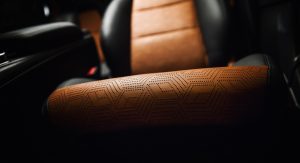 The fine perforation with 3D effect was the most expensive part of the customization, a first for the Bulgarian company, who also changed the middle sections of the seats and door panels.