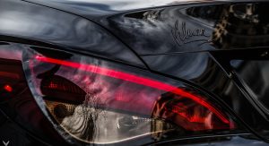 Additionally, the compact four-door coupe received darkened taillights, a glossy black look for the 3-pointed star logo on both ends, the tuner’s signature on the boot lid, and 17-inch dual-tone ‘Gunmetal Light Graphite/Honey Bronze’ rims.