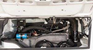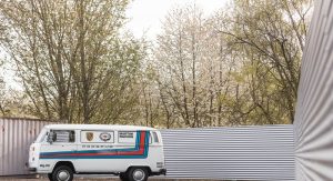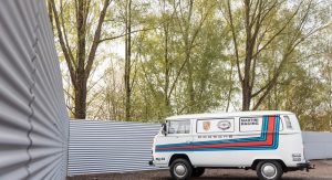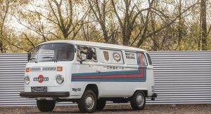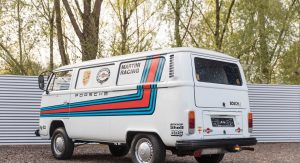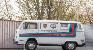 Bonhams estimates it will sell for at least $350k when the gavel drops. And whoever places the winning bid will also likely be keen to bid on the matching VW bus. It’s not just that the van is set up specifically as a support vehicle for historic racing, or has the Martini Racing livery to go with it, but it happens to have been upgraded with an engine swap as well. Instead of the standard four-cylinder engine (which ranged in displacement from 1.6 to 2.0 liters), this T2 packs the 2.1-liter boxer engine from a Porsche 914, giving it more oomph and legitimate rights to the wear the Porsche name.