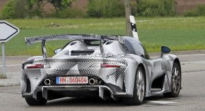 Though still heavily camouflaged, this pre-production prototype for the as-yet unnamed Dallara supercar looks like a more compact Group C racer than other (barely) street-legal road car this side of the Radical RXC or Dauer 962.