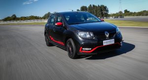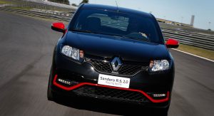 It’s the Sandero RS 2.0, a model which is sold (sans the Renault Sport treatment) in other markets as a Dacia. Now introduced at the Buenos Aires Motor Show as the Racing Spirit edition, it packs 17-inch alloys, Michelin PS4 tires, red brake calipers, and other heart-rate-quickening touches both inside and out.