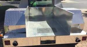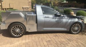 Located in Arizona, this automotive oddity blends a luxury sedan with a custom truck bed constructed out of diamond plate aluminum panels.