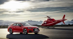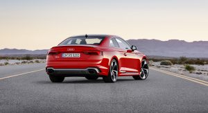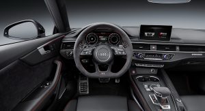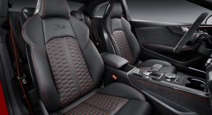 The bodywork features a much wider and flatter front grille from the base models, additional air intakes next to the headlights and Audi 90 Quattro IMSA GTO-inspired fenders that are wider by 15mm (0.6 inches). As standard, the new RS5 Coupe comes with 19-inch wheels, with 20-inch alloys available as optional extras.