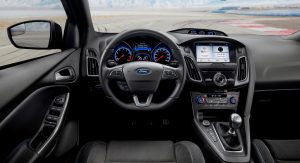 While the price has climbed substantially, the 2018 Focus RS will come with a modestly revised exterior that includes a gloss black roof, gloss black mirror caps, and 19-inch forged alloy wheels with blue center caps.