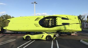 Why, you buy a speedboat to match, of course! And that’s just what we have here. Listed for sale via JamesEdition in Fort Lauderdale is an Aventador SV Roadster with a matching catamaran. And we do mean matching.