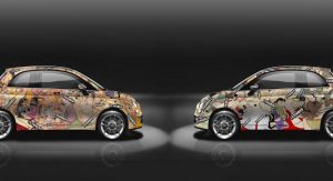 What you’re looking at are actually two different Fiat 500 models, depicting representations of Kama Sutra. Thankfully, the naughty parts are initially censored with black rectangles, however once the temperature rises, the thermochromic, heat-sensitive paint reveals what’s underneath.