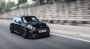 The chassis has been enhanced with a new suspension setup that drops this Mini 30mm closer to the ground and enabling it to “take full advantage of the additional performance without removing any of the original model’s character”.