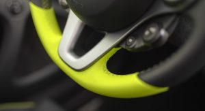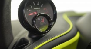 Coined ‘The Green Spark Project’, the car has been fitted with fluorescent yellow accents on the steering wheel, dashboard, door panels and center console and is certainly attention grabbing. These touches have then been completed with bright contrast stitching and a number of elements upholstered in lush black leather and alcantara.