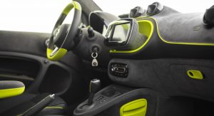 Powered by an 898cc engine with 107 hp and 170 Nm of torque, the Brabus Smart ForTwo isn’t very fast. On the bright side, that will allow the owner of this example to enjoy the interior for even longer periods.