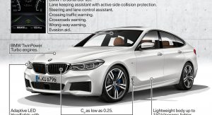 Besides the additional cargo capacity, the 6-Series GT boasts a freestanding 10.25-inch iDrive display with voice and gesture control. The car can also be equipped with a semi-autonomous driving system, a heads-up display, and electrically-adjustable rear comfort seats.