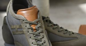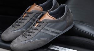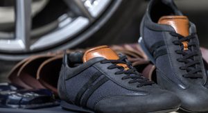 The leather kicks are made in collaboration with Italian shoemaker Hogan and are based on the latter’s Olympia model – but with unique Aston Martin flair. They combine nylon mesh inserts for a sportier look and feel, together with their leather construction that includes elements made by the same craftsmen that upholster the interior of so many Vantages and Vanquishes in such exquisite style.