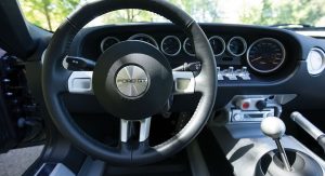 The 0-60mph (96km/h) sprint takes 3.3 seconds, bringing it closer to the Mercedes-McLaren SLR and Porsche Carrera GT, rather than the Ferrari 360 which was Ford’s original target.