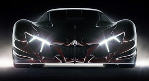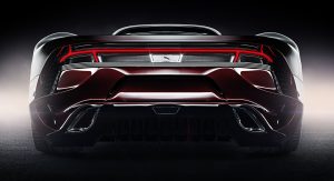 As for notable exterior features, there are the rather peculiar headlights, the BMW-like grille, large LED strip at the rear, triple exhaust and a massive rear diffuser. You can also see the power unit through the engine cover, which is always a nice touch.
