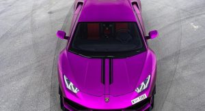 Before calling it a day, the tuner applied a special purple wrap to the exterior and a couple of double black stripes to the front hood – and, paying attention to every last detail, they also gave the key fob a purple finish.