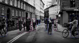 Davidson shot around 30 photographs through the lenses of the safety cameras, capturing life on the streets of Copenhagen from a new perspective.