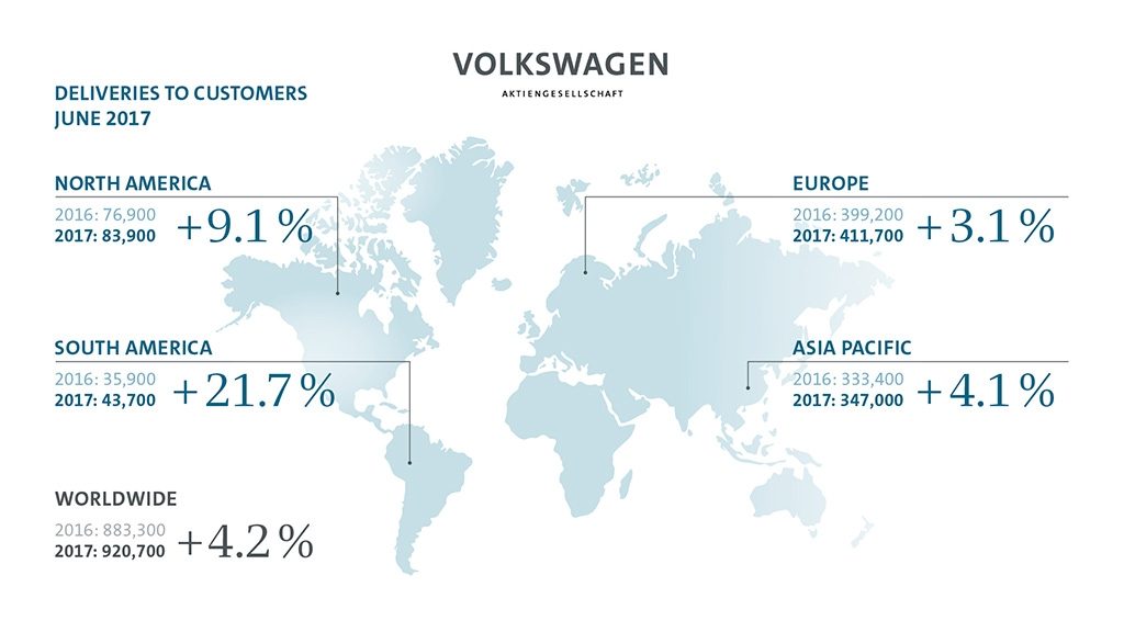 The Germans did well in North America too, shipping 3.9 percent more cars from January to the end of June. In the United States, sales rose by 7.2 percent, to 293,400. In South America, sales were up by 11.4 percent, contributing with the delivery of 248,300 vehicles.