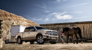 Customers who do a lot of towing will want to check out the F-150 with the second-generation 3.5-liter EcoBoost V6 engine which cranks out 375 hp (280 kW) and 470 lb-ft (636 Nm) of torque. The latter number “beats all diesel- and gasoline-powered competitors” and helps to give the truck a best-in-class towing capacity of 13,200 pounds (5,987 kg). Despite this, the engine is relatively frugal as rear-wheel drive variants have an EPA-estimated fuel economy rating of 18 mpg city / 25 mpg highway / 21 mpg combined.