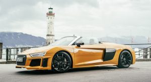This means that the lesser version of the Audi R8 matches the power of its more potent sibling. We don’t know what its new 0-100km/h (62mph) acceleration time is, but it definitely slashes something off the 3.5sec needed before the conversion, and probably comes very close to the V10 Plus’ 3.2sec.