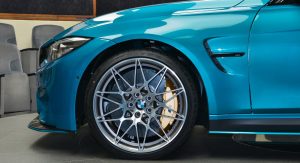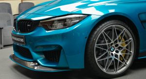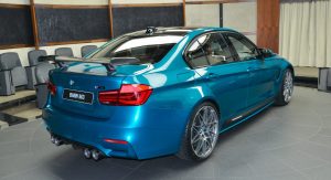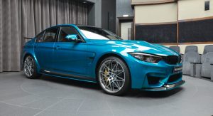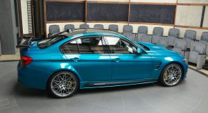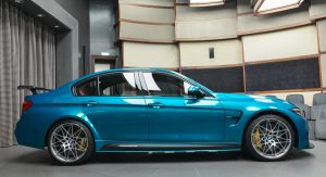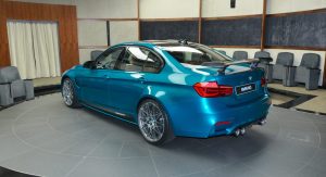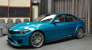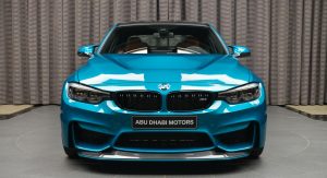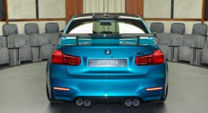 Aside from the obviously rich color scheme, this Atlantis Blue M3 is also rocking an M-Performance body kit as well as an M-Performance exhaust and M4 GTS bonnet.