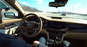 Cadillac has marketed Super Cruise as the industry’s first hands-free driving technology. It incorporates a driver attention function which uses a small camera on top of the steering column to monitor the driver and their head position while Super Cruise is activated. If the system determines that the driver has turned away for too long, visual, tactile and audible alerts will play until the driver takes control of the car.