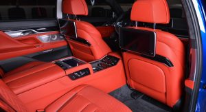 As for the interior, well, it’s opinion-splitting to say the least. Bathed in almost nothing but red leather, it looks quite nice when viewed from the outside, contrasting the blue paint. But on closer inspection, it’s hard not to think about how it cheapens the interior of BMW’s most luxurious vehicle.