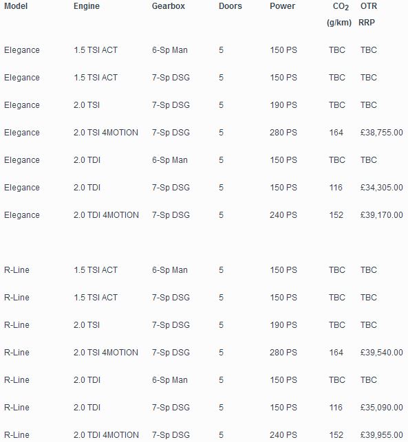 Automated DSG dual clutch 7-speed gearboxes will be available across the range, while the most powerful versions available, namely the 280 PS 2.0 TSI and the 240 PS 2.0 TDI, will also feature 4MOTION all-wheel drive as standard. Models featuring either the 150 PS petrol or diesel engine will also be available with a six-speed manual transmission and front wheel drive.