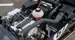 Other styling features include the Brookland aero screen, extended front cycle wings, Le Mans-style mesh grille and side intake, polished exhaust, silver mirrors, classic taillights, non-louvered bonnet, grey-finished chassis and suspension, full racing livery, and 14-inch cream wheels, wrapped in Avon 155/65 tires.
