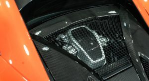 Out back, you’ve got the rear diffuser, re-engineered engine bonnet, plus of course the massive wing that blends in with the carbon fiber rear fascia.
