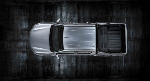 The show truck wears special graphics on its silver bodywork, but there’s more to it than that. It also wears matte black brush guards, wheel arches, under-floor running gear protection, and 18-inch alloys, shod with BF Goodrich all-terrain tires. The truck also wears an aftermarket bedliner and enhanced interior.