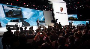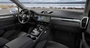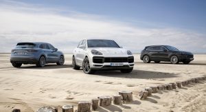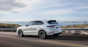 Porsche’s range-topping Cayenne can be complemented by optional rear-axle steering, Dynamic Chassis Control roll stabilization, which is fed by the 48-volt vehicle electric system, and Torque Vectoring Plus as well.