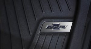 Both the mid-size and full-size trucks are decked out in a special shade of Centennial Blue – a rather handsome dark hue, complemented by hundred-year door badges and heritage bowtie emblems front, rear, on the spray-in bedliner, and on the accessory floor mats.