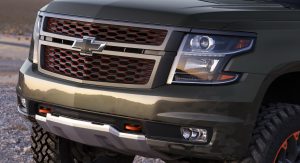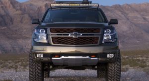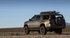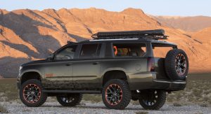In addition to the technical upgrades, the Chevrolet Luke Bryan Suburban Concept has a custom lower front end, Hunter Bronze finish with Dark Carbon accents and camouflage graphics, ‘Huntin’, Fishin’ and Lovin’ Every Day’ badges, roof-mounted light rack by Baja Designs and fishing rod holder, and swing-out tailgate with spare tire mount.