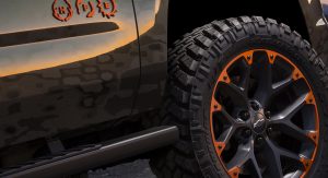 Chevrolet Accessories’ Bluetooth headphones and Bullfrog music system by Kicker are found inside, along with the fully trimmed seats with Argon piping and Platinum camo-pattern perforated inserts, rear-facing third-row seats with custom footwell, reverse-mounted rear-seat DVD player, special floor mats, and other goodies.